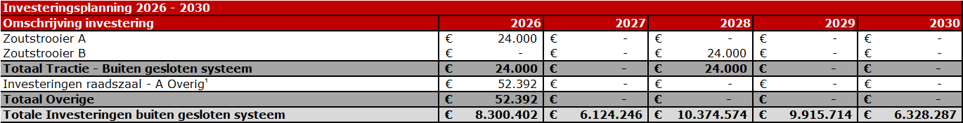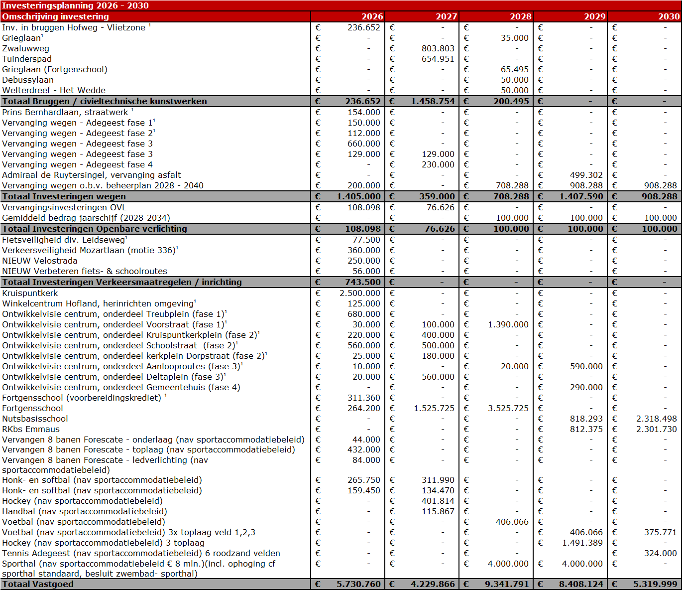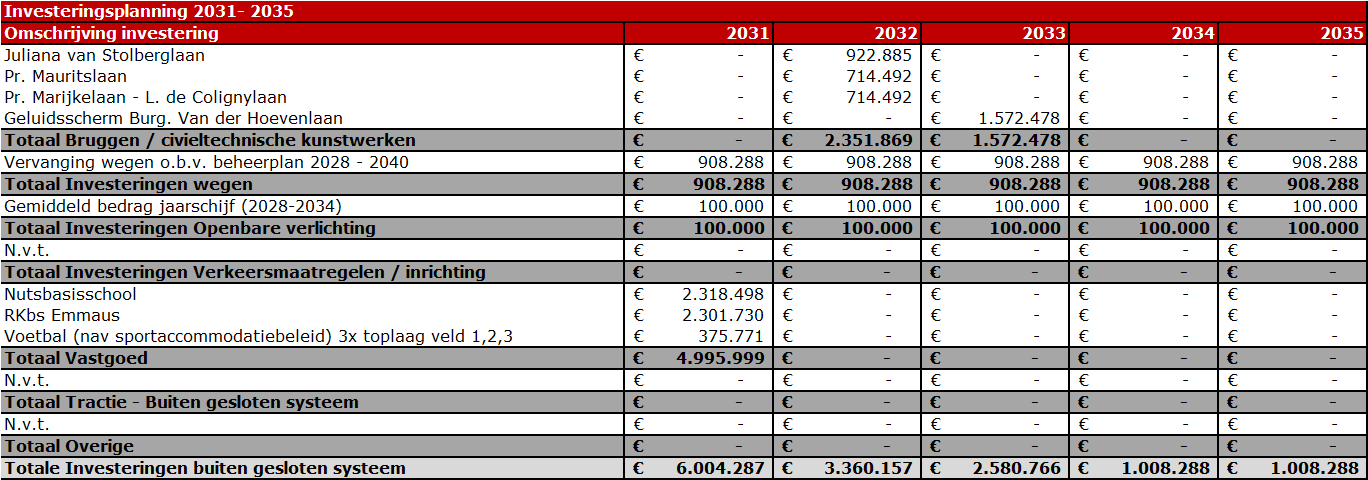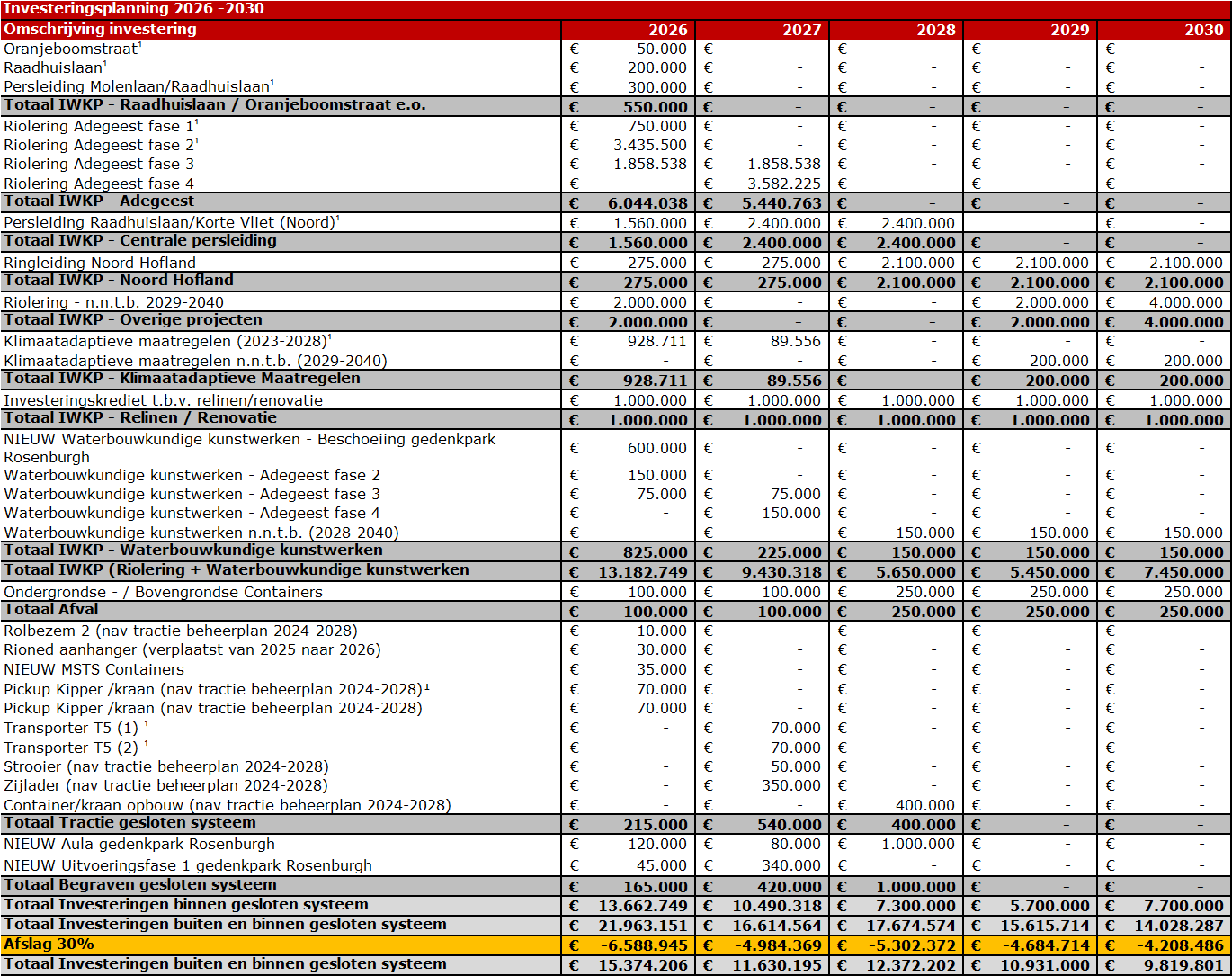 Deze tabellen tonen eerst de investeringsplanning in de periode 2026 tot en met 2030, en vervolgens de investeringsplanning in de periode 2031 tot en met 2035.